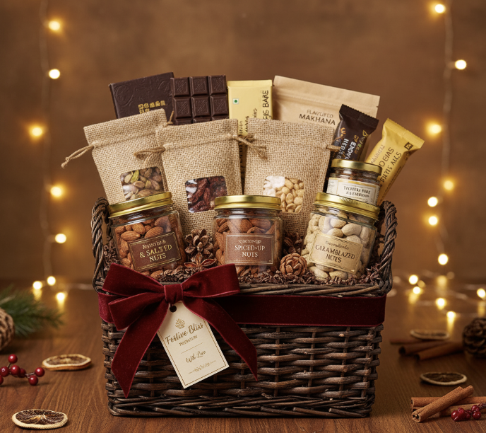 The Festive Bliss Premium Gift Basket stands as an elegant reflection of your brand’s values — thoughtful, refined, and health-oriented.